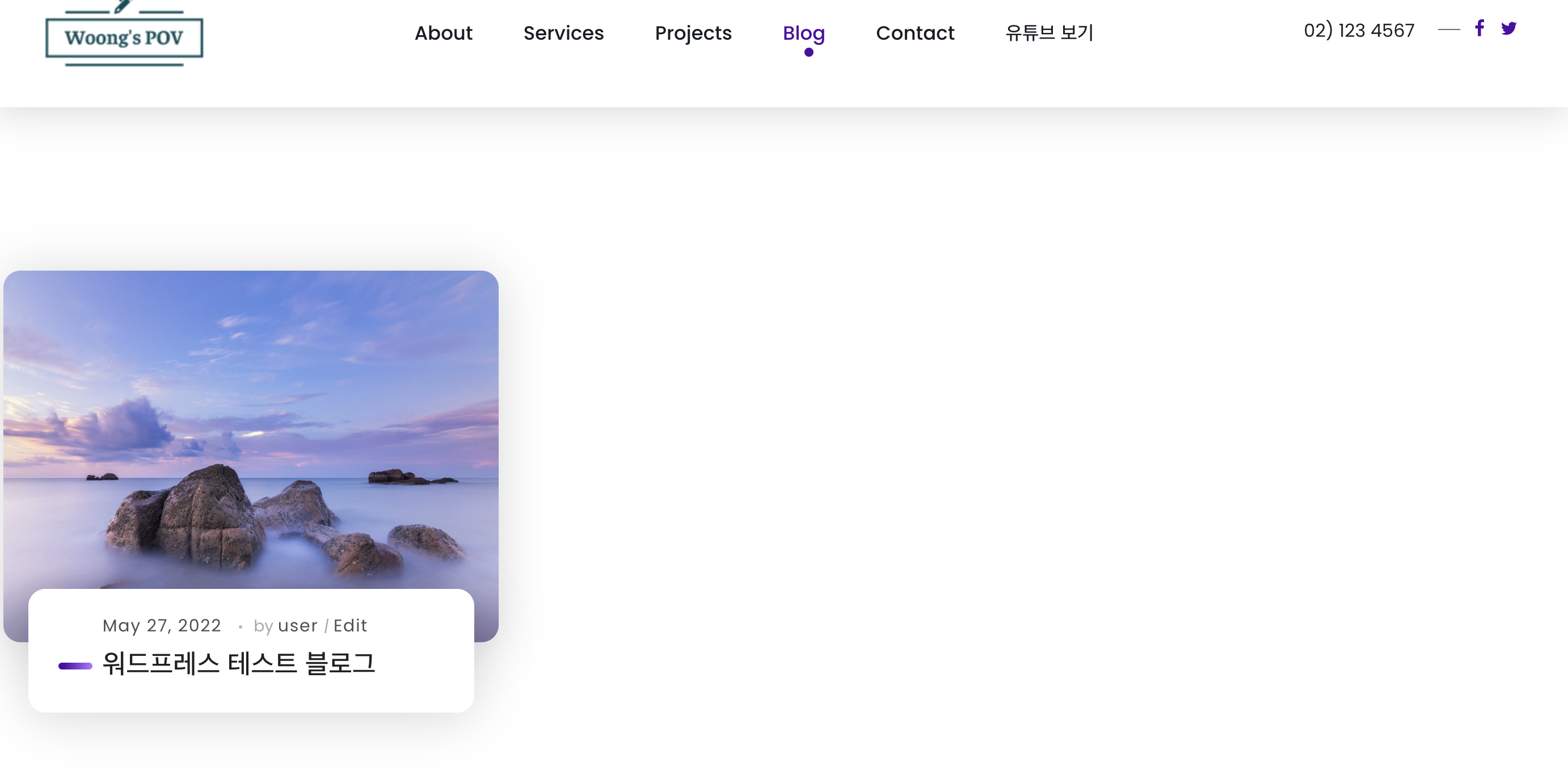불필요했던 기존의 데모 블로그 글들은 삭제되고 방금 테스트로 업로드한 블로그 글만 블로그 페이지에 있는 것을 확인할 수 있다. 이렇게 워드프레스에서 블로그 글을 작성하는 방법과 카테고리 설정 방법 그리고 블로그 연결방법에 대한 설명을 마무리하도록 하겠다. 궁금한 사항은 댓글로 문의 바란다.