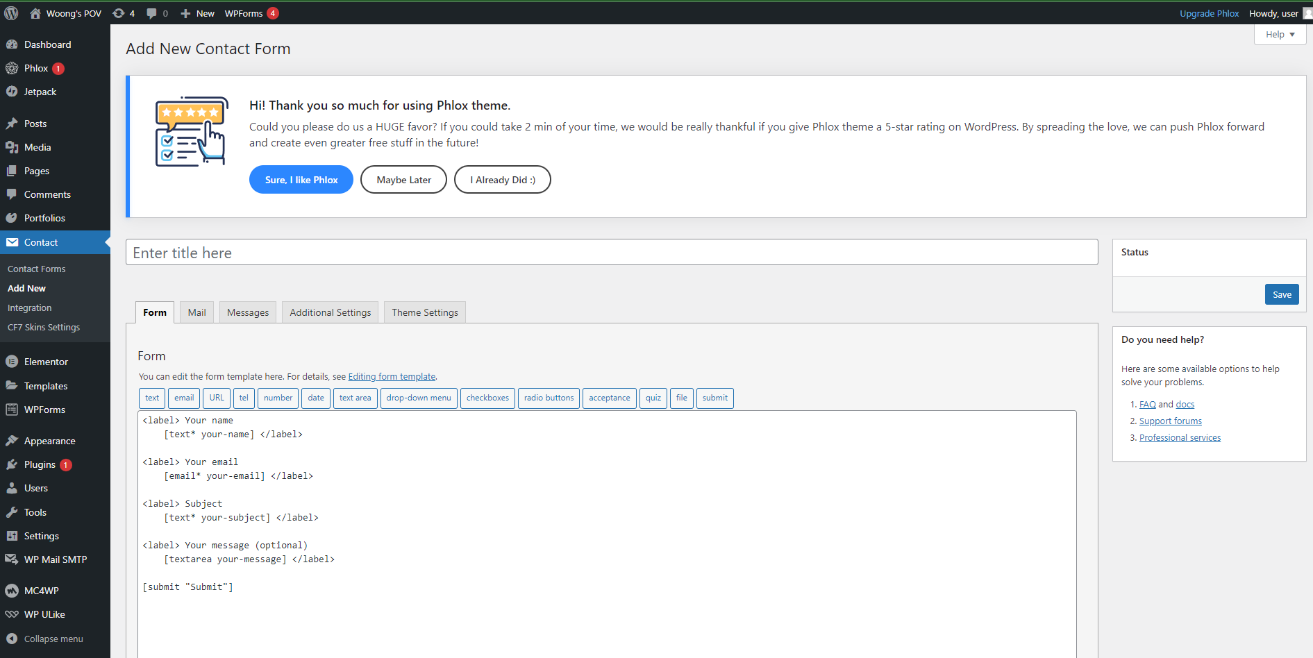 Contact form 7 세팅하기