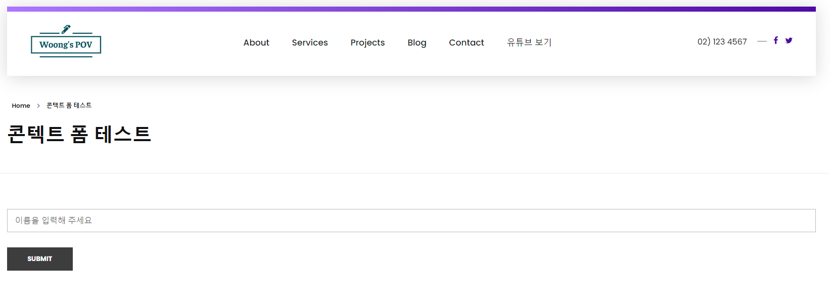 필자가 입력한 내용을 발행하여 실제로 데스크톱에서 어떻게 보이는지 확인해 보았다. 위와 같이 양식이 정상적으로 보이고, 각 항목에 들어간 placeholder 또한 잘 보인다. 이제 contact form을 활용해 원하는 양식을 만들 수 있을 것이다. 만든 양식은 지난 1편에서 소개한 방법으로 웹사이트의 원하는 위치에 shortcode를 삽입하여 사용하면 된다. 혹시나 사용방법을 모르는 분들은 1편 블로그를 확인하면 된다.