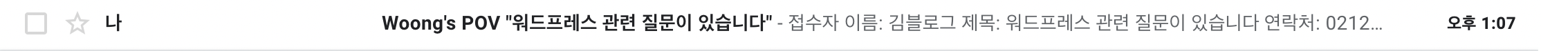 처음 발송했던 양식과는 다르게 태그를 맞게 변경해주니 모든 내용이 정확하게 들어가 있는 것을 확인할 수 있다. 이제 양식을 만들고 관리자 메일로 제출된 양식에 대한 정확한 내용을 받아볼 수 있는 준비가 되었다. Contact form 7을 활용해서 웹사이트 방문자로부터 필요한 다양한 정보를 받아볼 수 있다.