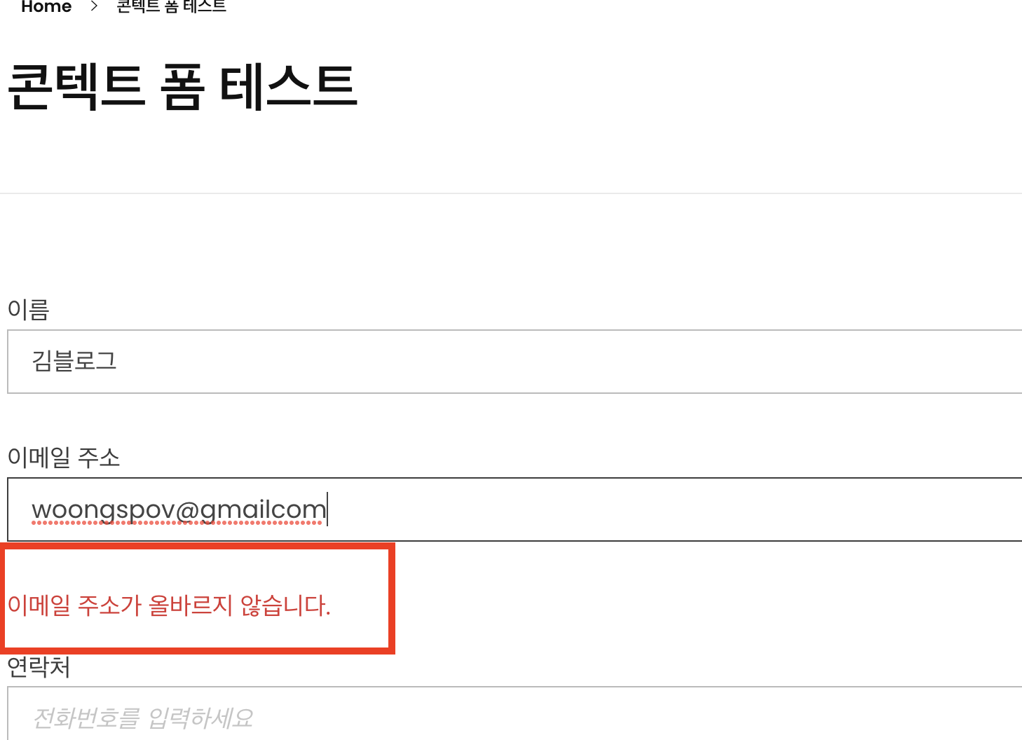 연락처가 올바르지 않습니다.