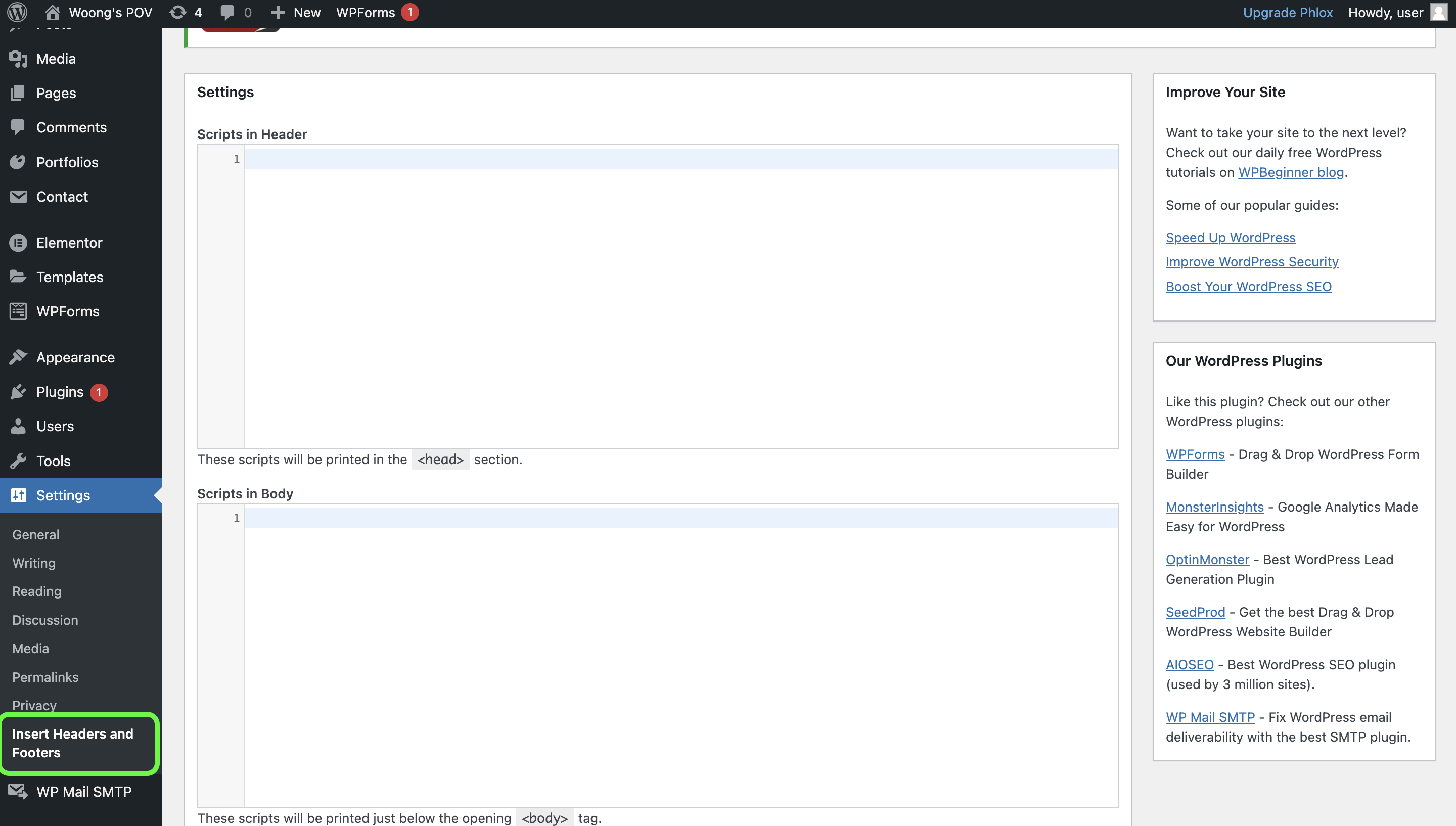 Insert Headers and Footers by WPBeginner 플러그인으로 구글 애널리틱스 태그 삽입하기
