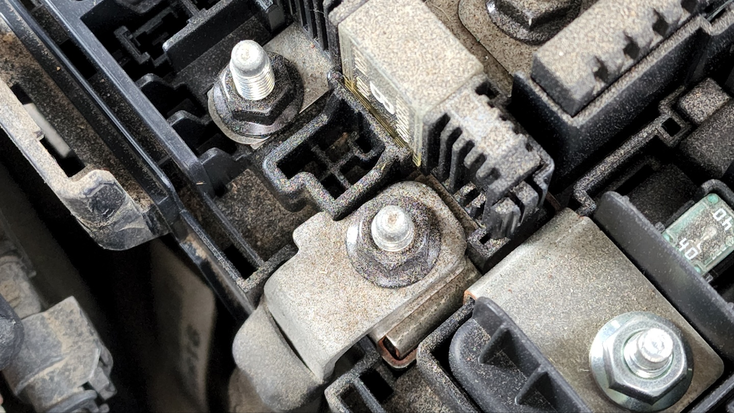 침수가 되면 퓨즈박스는 교체할 수 밖에 없습니다. 먼저 보닛을 열었을 때, 연식이 있는 차임에도 유독 퓨즈박스가 깨끗하다면 퓨즈 박스가 교체된 것을 의심해 볼 수 있습니다. 두 번째로는 퓨즈 박스 뚜껑을 열어보면 퓨즈박스를 차량 내부에 연결한 볼트와 너트가 있는 부분을 확인할 수 있습니다. 연결된 부분이 유독 주변 부품들에 비해서 깨끗하거나, 반질반질 광이 난다면 역시 퓨즈 박스가 교체된 것을 예상할 수 있고 침수가 되었을 것으로 유추해볼 수 있습니다.