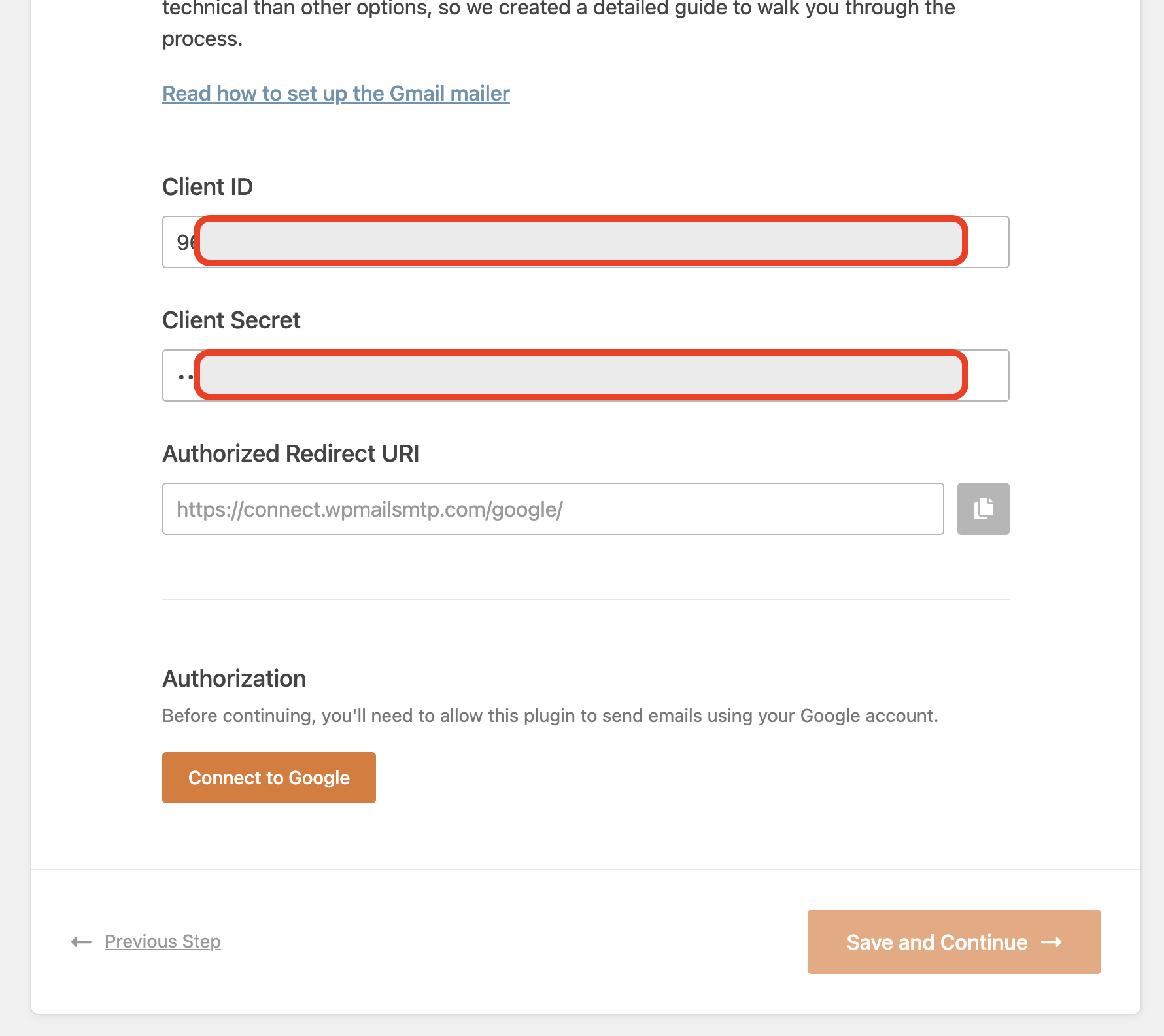 WP MAIL SMTP 클라이언트 아이디 및 시크릿 넘버 입력