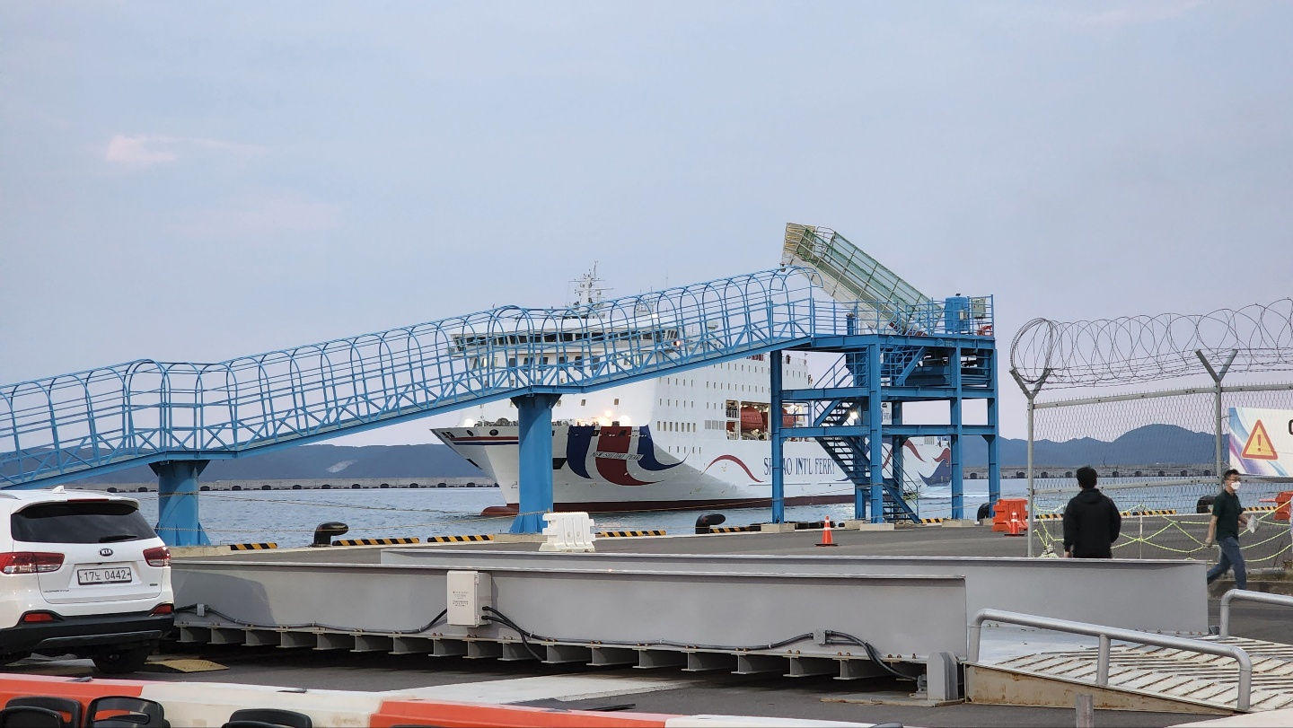 *나는 굉장히 일찍 도착한 편이다. 7시부터 선적이 가능하고 9시 반까지 차량이 도착해야 한다고 했지만 9시 50분이 넘어서도 차량들이 도착하고 선적을 하고 그랬다. 늦게 들어간 차가 빨리 나간다는 설도 있지만 실제로 사동항에서 내리면서는 잘 느끼진 못했다. 사동항에 도착 후, 배에서 내리고 20분 정도 기다려서 차가 나왔다.