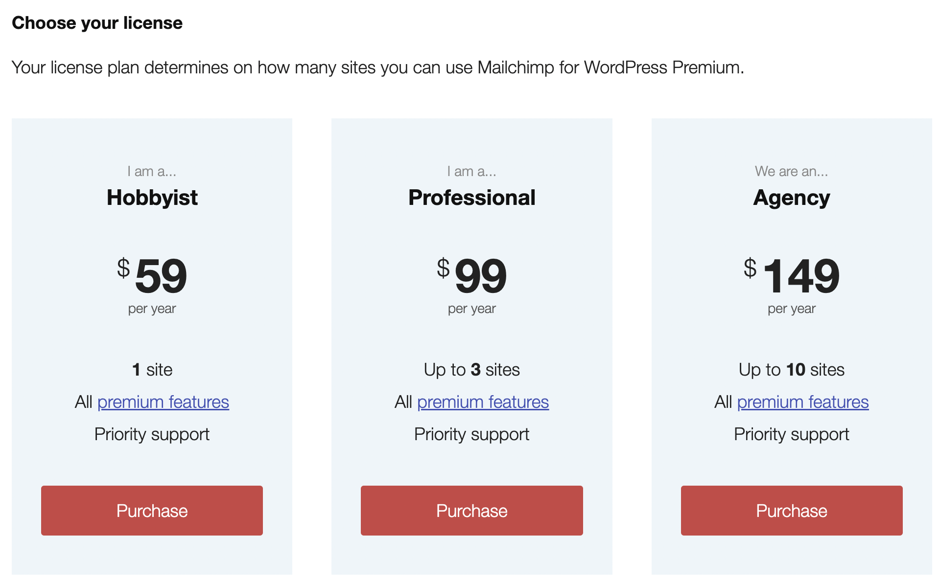 MC4WP는 위에도 설명했지만 메일침프라는 서비스에서 제공하는 워드프레스에서 구독자를 모집하는 플러그인이다. 즉, 내 워드프레스 사이트에서 MC4WP 플러그인을 통해 구독자가 발생된다면, 결국 구독자 목록을 확인하고 메일을 발송할 수 있는 곳은 메일 침프 사이트인 것이다. 결론은 메일 침프에서 웹사이트 방문자 수에따라서 저장해야하는 메일 주소가 많거나 발송해야하는 메일의 수가 무료 수량 이상이 될 때는 결제를 해서 사용을 해야하는 서비스인 것이다.