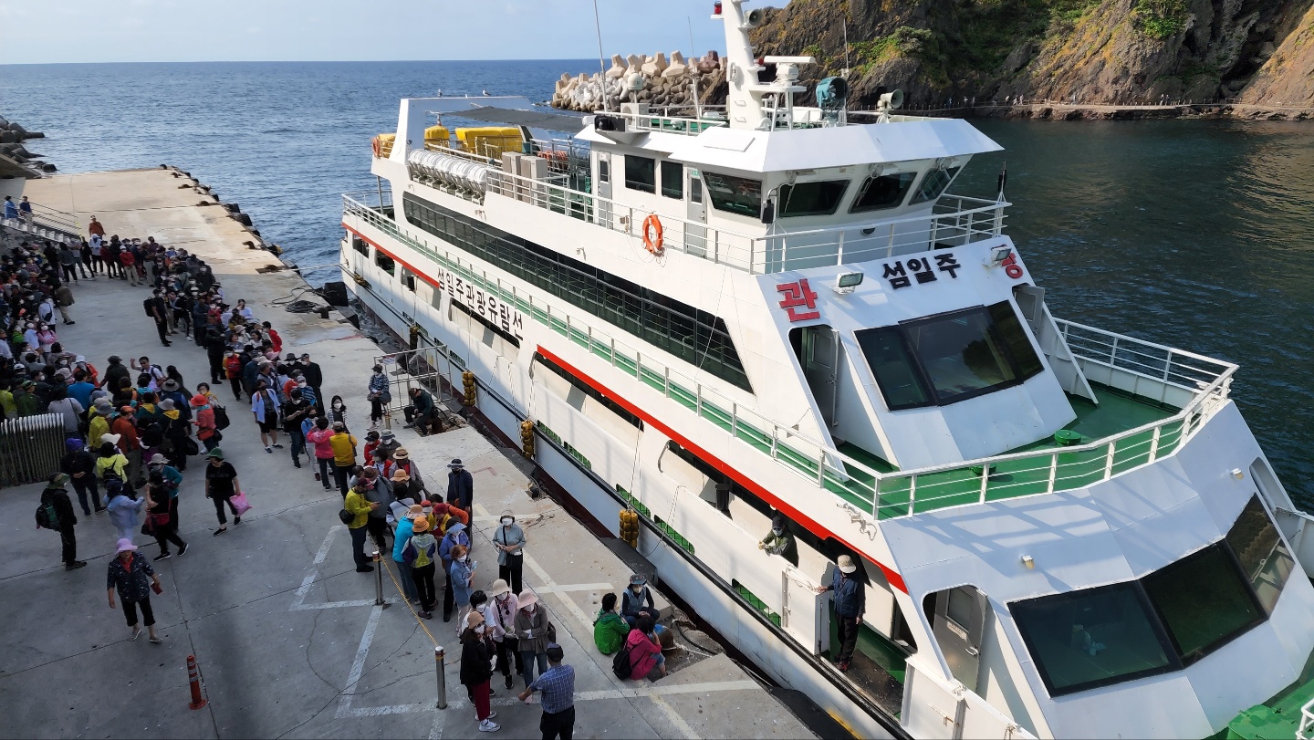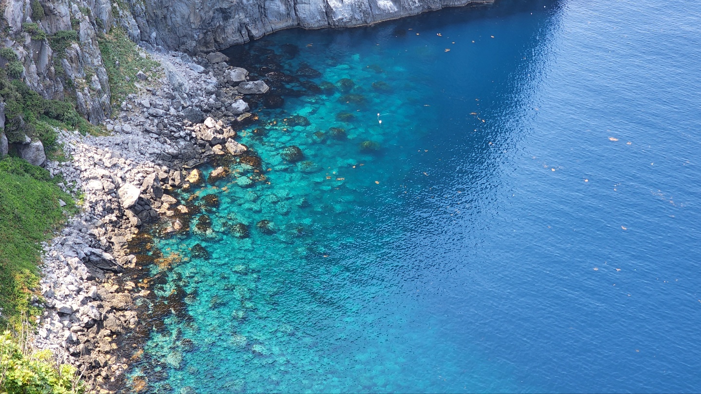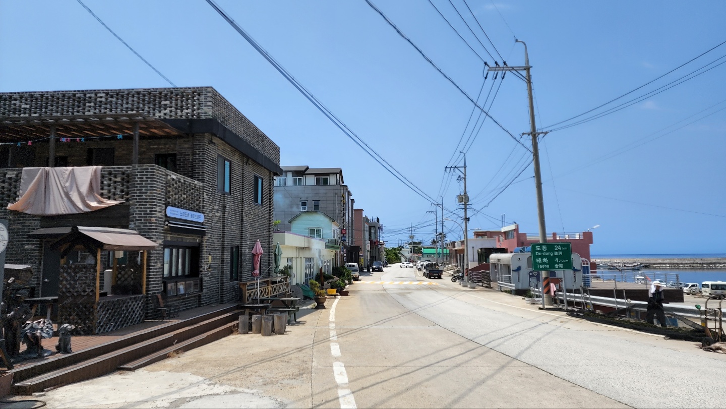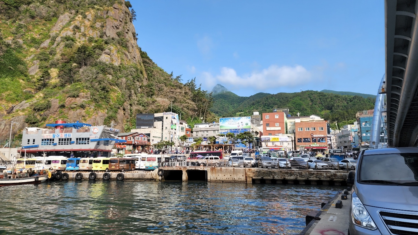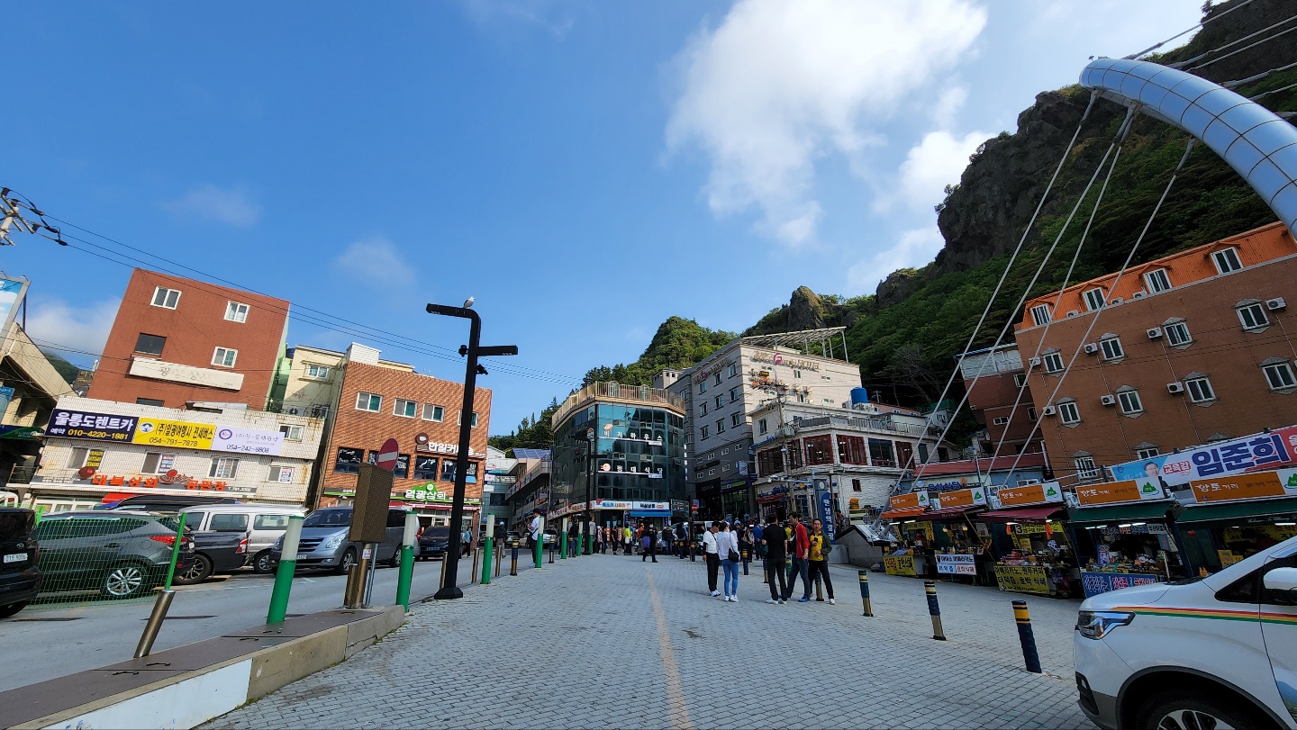 목욕을 개운하게 하고 나왔다. 배도 고팠으나, 날도 많이 갰고, 한번 근처를 둘러보기로 한다. 시간은 9시가 좀 넘은 시간이었다. 아침부터 많은 사람들이 있었고, 도동에서 출발하는 섬일주 페리를 타려고 줄을 선 사람들도 많았다. 건너편으로 보이는 해안산책로도 멋있었다. 동네 어르신들 같은데 항 바로 옆에서 무언가 잡으려고 낚시도 하고 계셨다. 그냥 평화로운 느낌이다. 도동 구경을 마무리하고 섬을 한 바퀴 도는 일정을 시작했다. 섬을 시계 반대 방향으로 돌기로 한다.