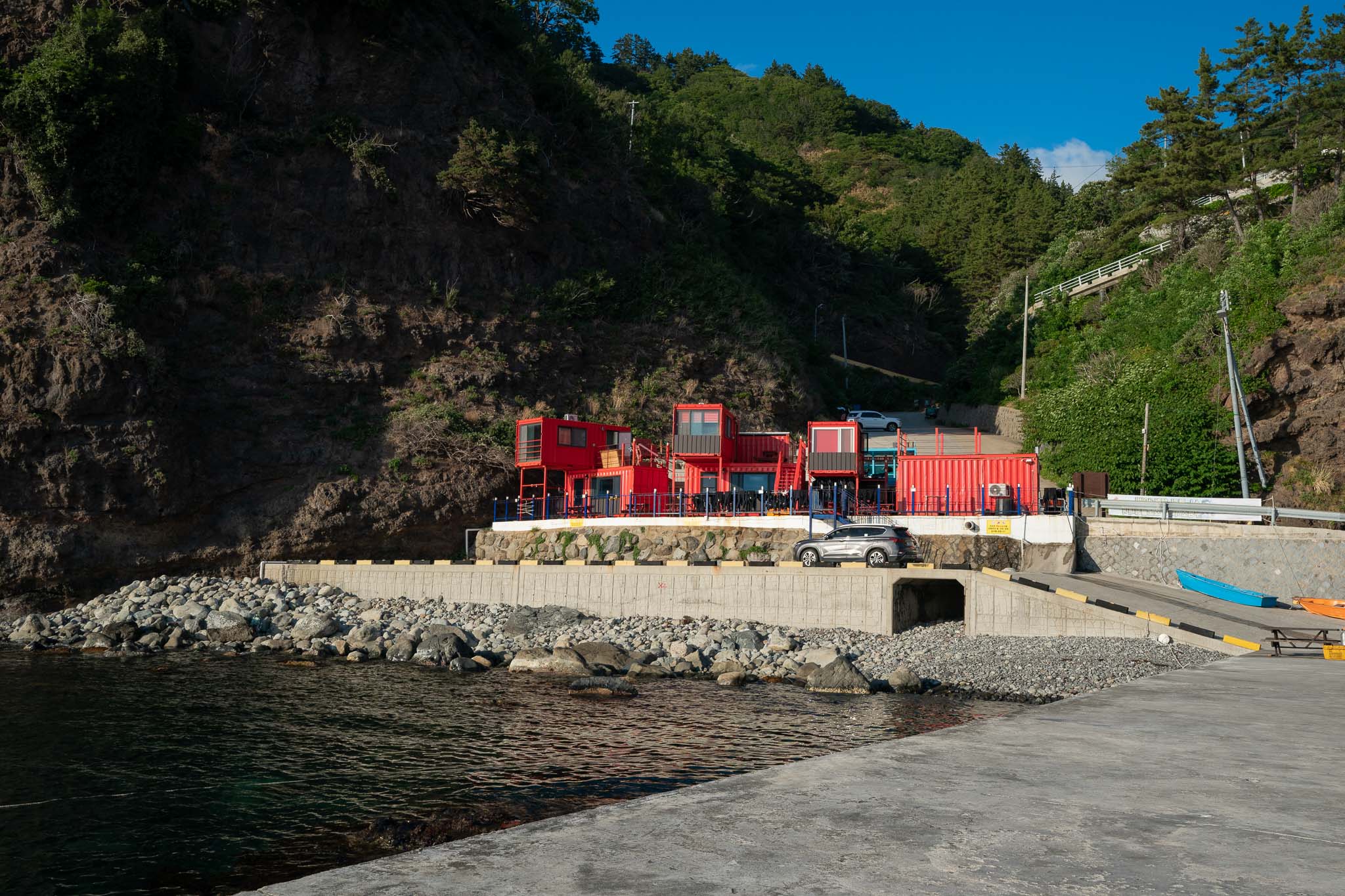 와달리 휴게소는 양쪽 방향으로 모두 휴게소가 있다. 울릉도를 시계 역 방향으로 돌다가 나오는 곧이 바다 향이며, 반대편은 큰 언덕 골짜기 밑에 휴게소가 있어서 암석이 떨어질까 걱정되기도 한다. 마운틴뷰가 아닌 절벽뷰다. 이 후, 이날 차박을 위해 와달리를 다시 찾게 되고, 나는 절벽뷰 밑이 조금 더 어둡고 조용해서 절벽뷰를 보며 차박을 하게 된다.