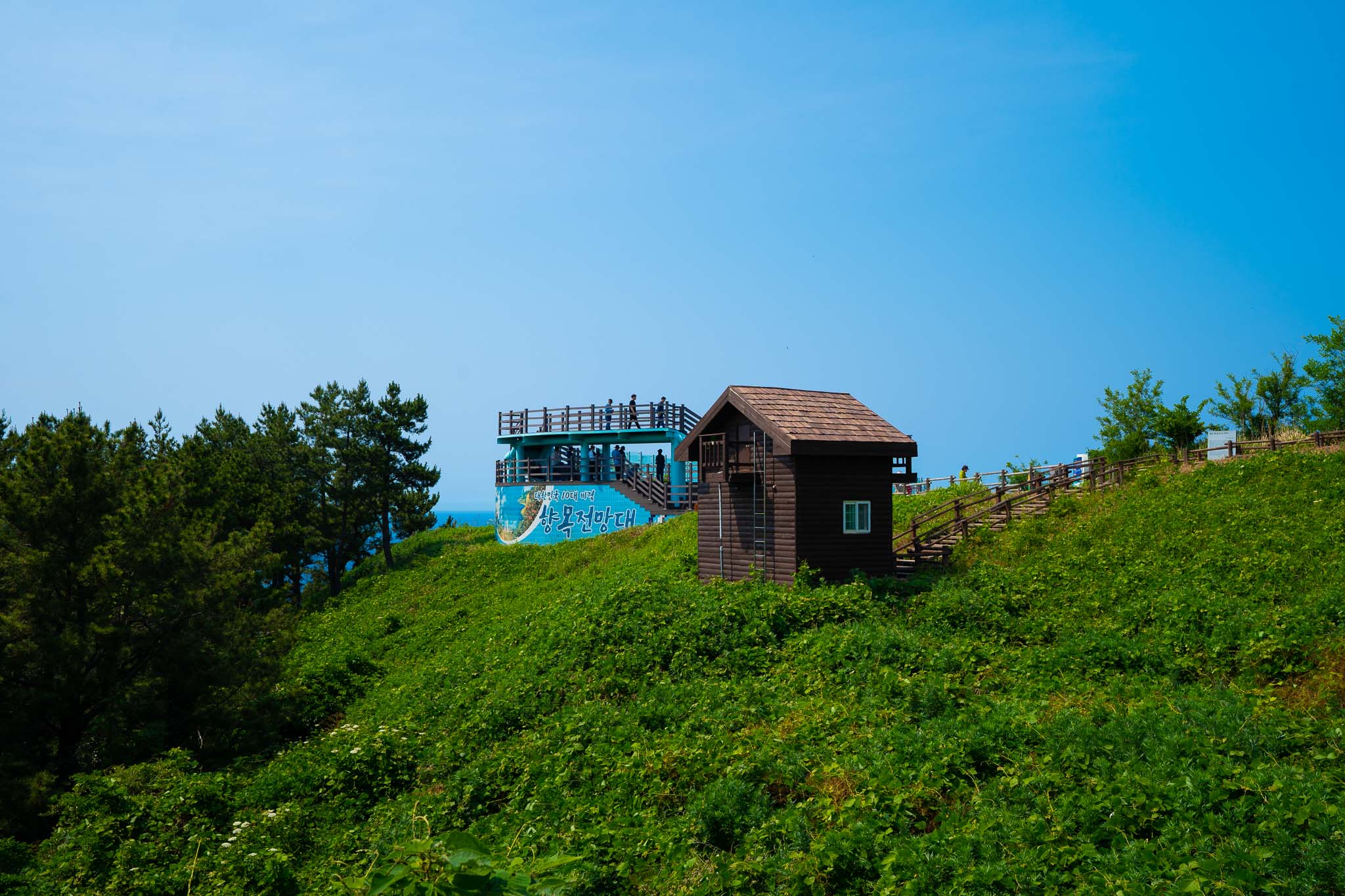 15분정도 여유롭게 걷다보면 숲에서 나오게 되면서 전망대가 보인다. 저 전망대에 올라가면 대풍감의 전경을 확인할 수 있다.