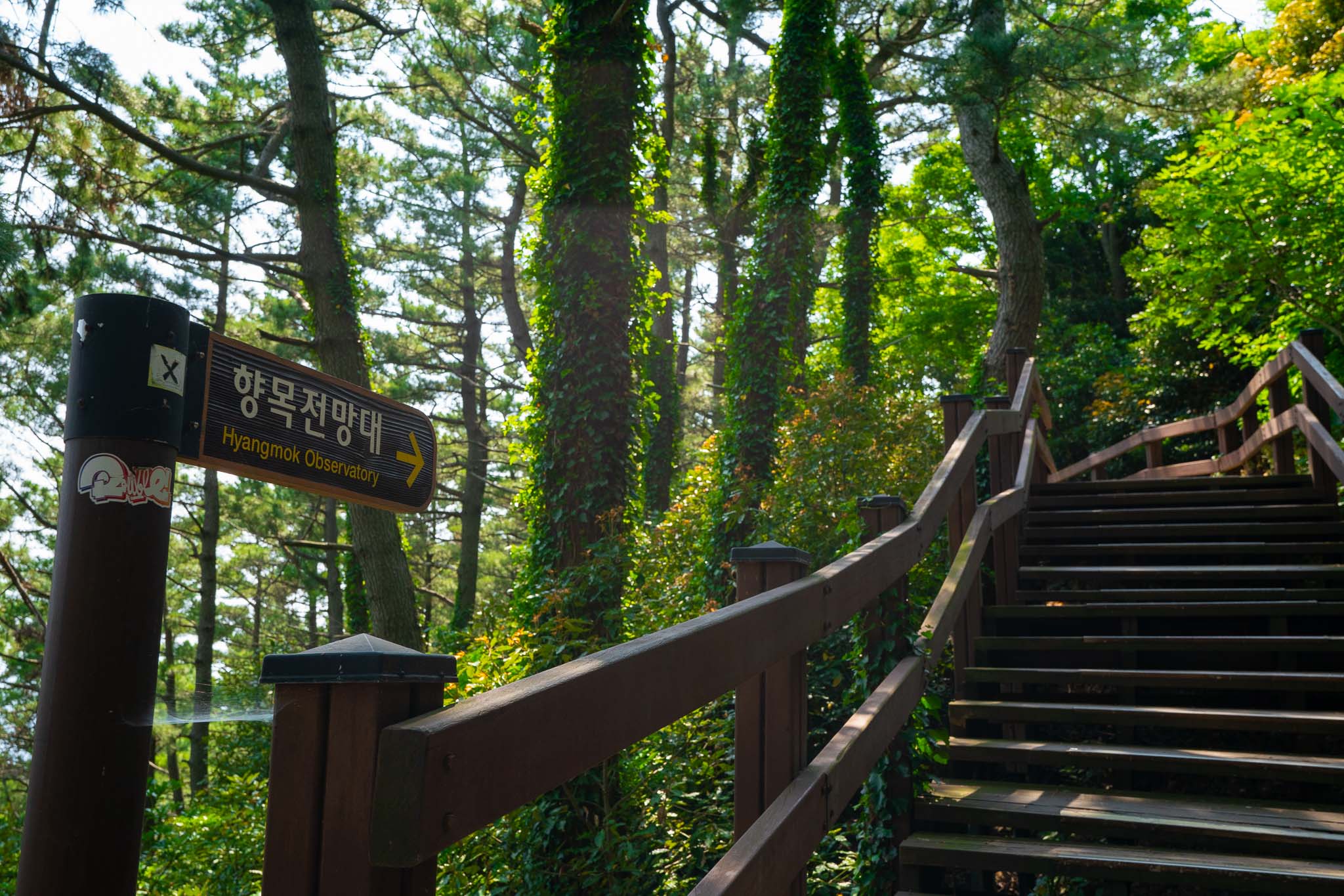 전망대로 가는 길은 나름 탐방로가 잘 갖춰져 있기 때문에 천천히 나무의 향과 바람을 느끼며 그늘 사이로 걸어갈 수 있다. 이전에 향나무가 엄청나게 많았다고 했던 것 같은데, 불이나서 전소했다고 한다.