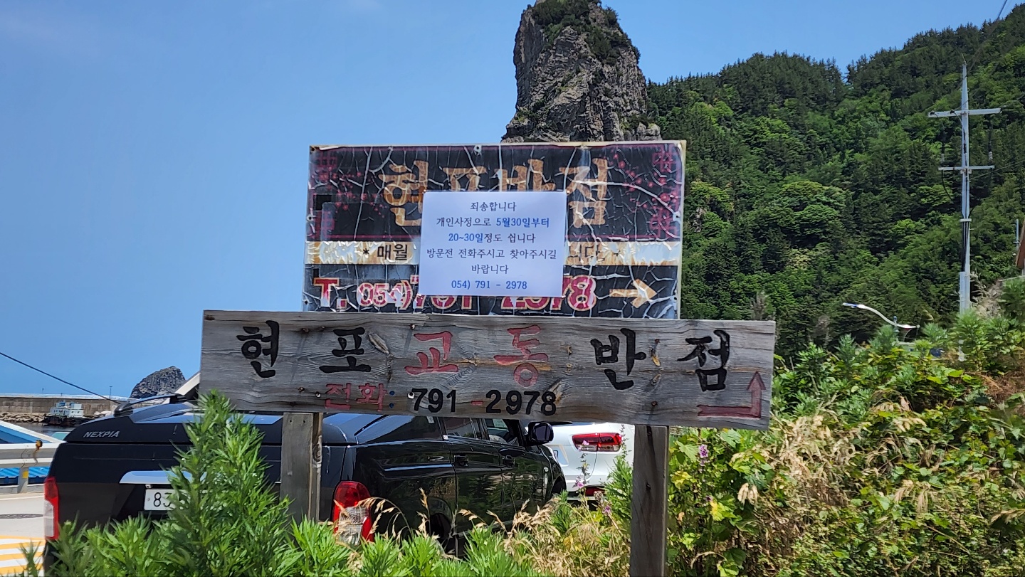 천부항을 지나서 가다보니 현포항이라는 곳이 보였다. 편의점도 있었고, 식당도 보여서 조금 늦은감이 있지만 점심을 먹고 구경해보기로 했다. 날도 맑았고, 현포항은 저동항이나 도동항보다는 훨씬 차분하고 조용한 느낌이었다.