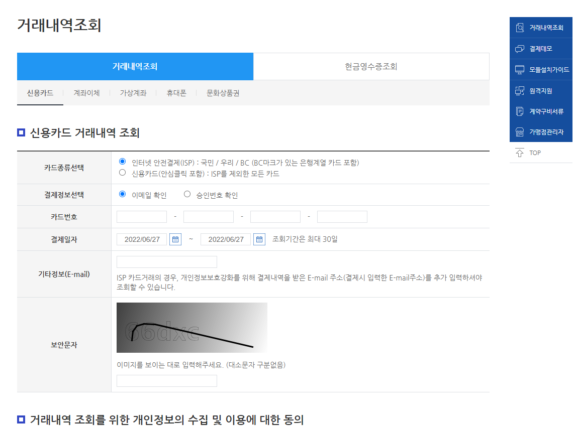 Nicepay 카드 내역 확인 방법